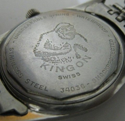 偶與金剛的邂遘 發佈日期: 2010-07-28 Last Updated on 2010-07-28 by william 無意間在網拍遇到這隻金剛錶,深深的吸引我當下馬上就跟著競標,最後終於標下來.這是1933年美國金剛電影的照片(from king kong wiki).接下來是金剛手錶1960年代製造, 瑞士機心, 錶背與手鍊都有金剛圖騰,非常有型. 分類:閑聊