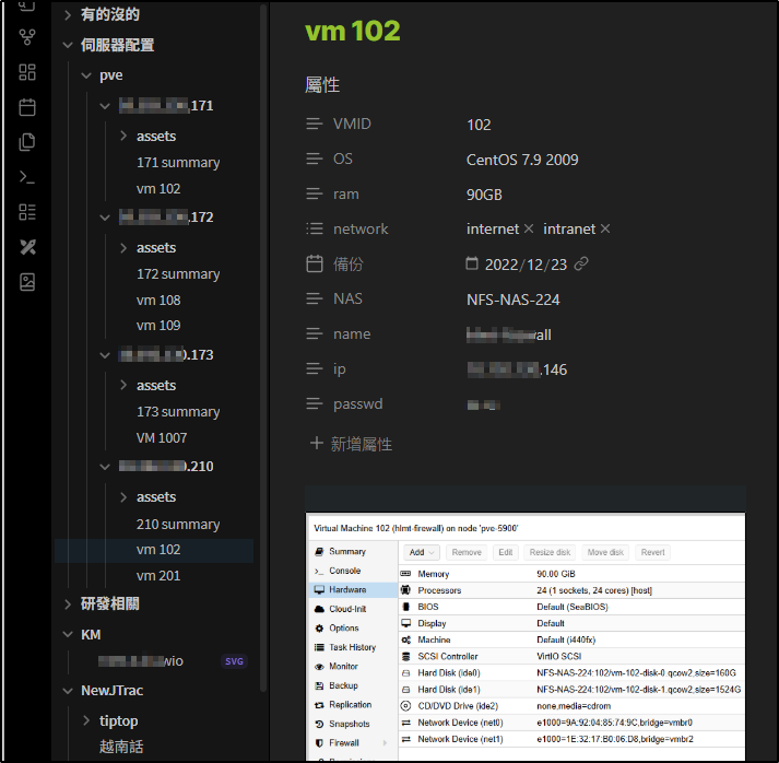 因為我稍早在 obsidian 有記錄下來 vm 的設定,所以重新配置起來很順利,也不需要挖出原本已經壞掉的開機碟,讀取原本 vm 的配置;但還是不得不說,是我忽略 vm 配置資料都在開機碟,且從沒想過沒備份設定檔案,這很掉漆,應該要定期備份開機碟的 vm 相關設定。